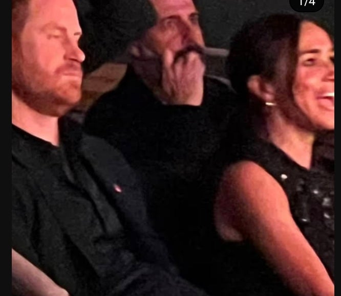 で、ハリーとメーガンもラスベガスに現れて、ケイティペリーのコンサートに登場。まるでファンが待ってたみたいにメーガンのつれてきたカメラマンが撮影会してたけど、人々はセリーヌディオンを見に来てたんだそうで、動画を見ると良く分かるらしい。この画像は、コンサートを見てるところ。
