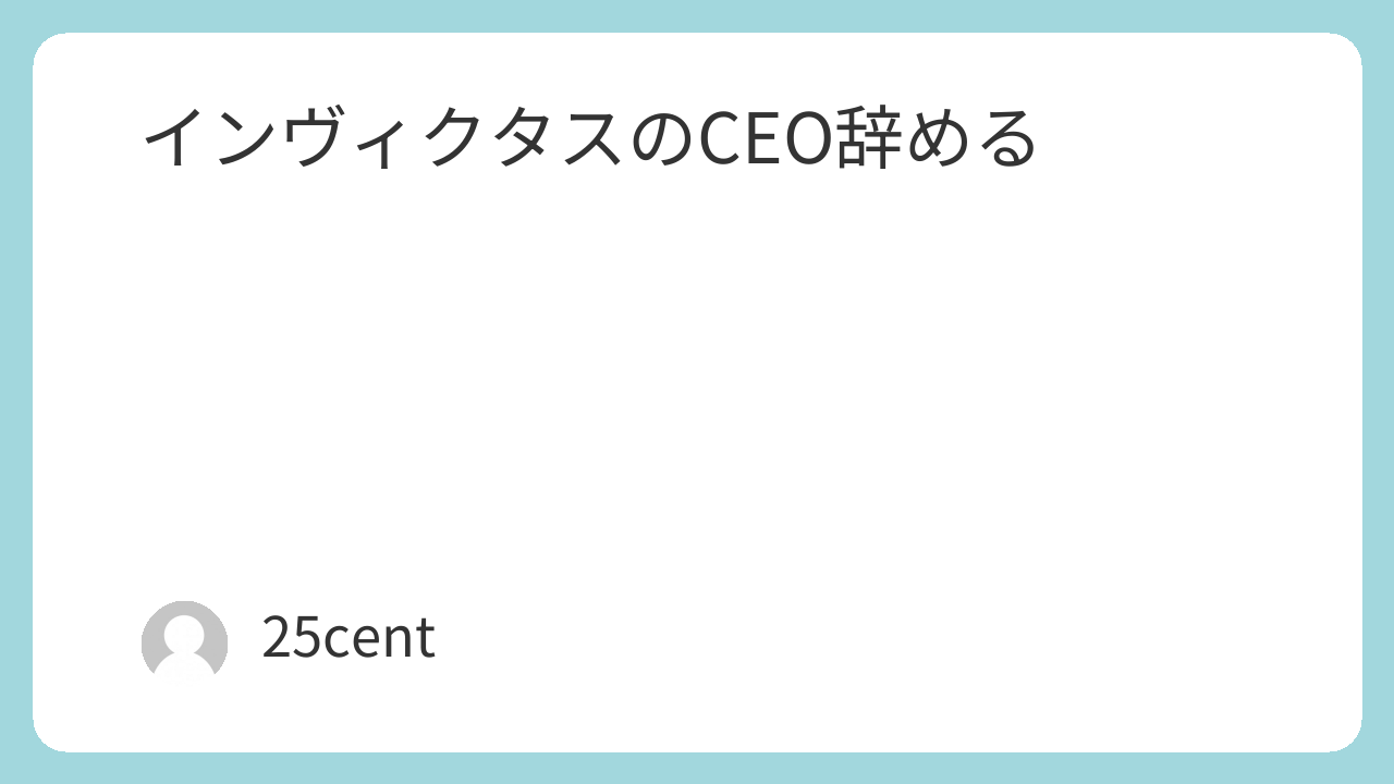 インヴィクタスのCEO辞める | 25せんとのブログ