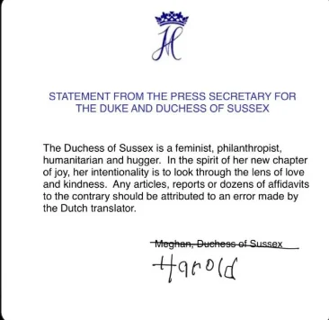追記:これはXにあげていた人からもらってきたものなので、ハロルドというサインはそのXをあげた人がサセックス公爵夫人を消してハロルドと書いたのだと思います。オリジナルはアーチウェルのサイトにあるそうですが、あのサイトは訪問すると情報を抜き取られるとして有名なので、サイトには行っていません。色々勘違いを起こさせてしまい申し訳ありません。