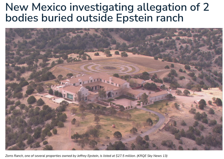 今回のエプスタインの公開された資料から、エプスタインのメールの中に、女の子たちをニューメキシコ州のエプスタインの家の一つに埋めたということがわかったので、FBI がエプスタインの家の庭の周りを掘り返し始めたという。