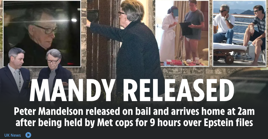 あの女性と一緒にパンツ一枚で写っていたエプスタインのパリの家での写真を撮られた元アメリカ大使もしたことがある労働党の議員ピーター・マンデルソンが2カ所の自宅を家宅捜査され、逮捕された。