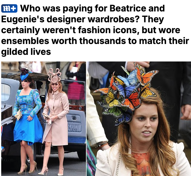 最後に、ユージニーとベアトリスの洋服がデザイナー・ブランド服だそうで、それを誰が払ってるのかと疑問視されている記事が出た。