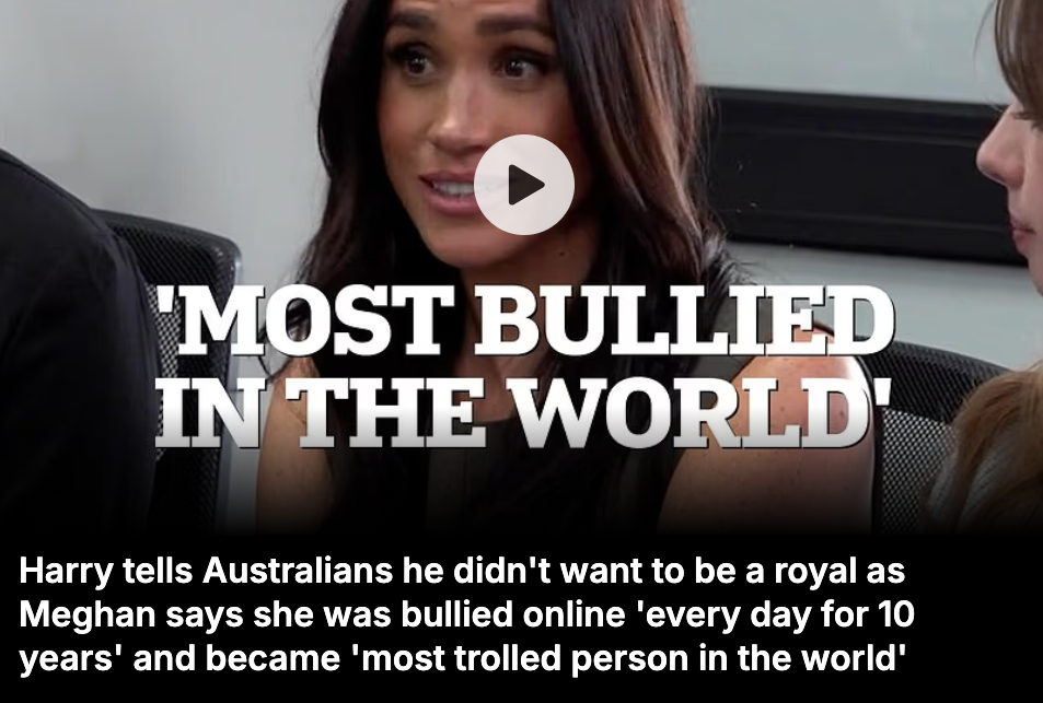 そしてメーガンは今日、ファンに対してスピーチをしたんだそうで、これは一体なんのイベントなのか。彼女の話によると、「自分は10年間毎日いじめられてきた」と言ってどれほど酷い目に遭ってきたかを滔々と語ったんだそうです。