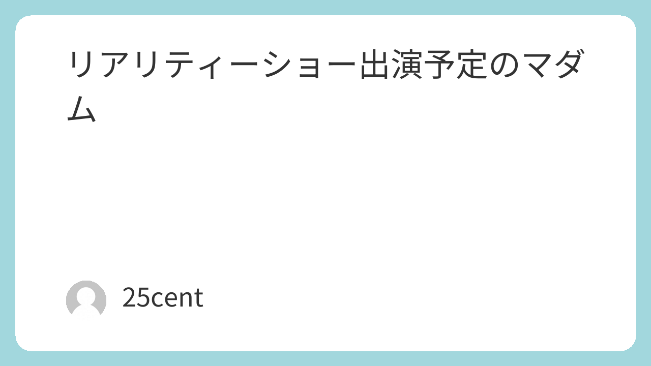 リアリティーショー出演予定のマダム | 25せんとのブログ