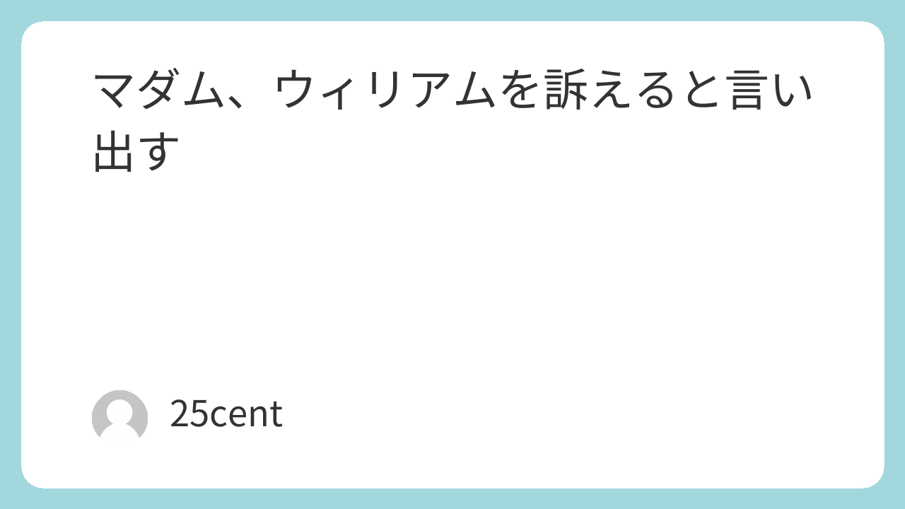 マダムがウィリアムを訴えるつもりで弁護士を探したりしているそうだ。