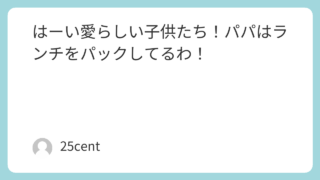 はーい愛らしい子供たち!パパはランチをパックしてるわ!
