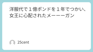 25せんとのブログ 洋服代で1億ポンドを1年でつかい、女王に心配されたメーーーガン
