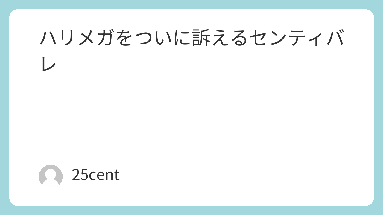どうやら、センティバレとしては大金全てをハリメガに使われてしまった(10億円くらいらしい)ので、今後どうやって活動していくかすらわからない状態だそうで、ハリメガを訴える事にしたようです。